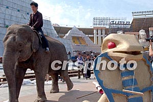 世界超大型景觀歌劇《阿依達(dá)》的動物演員九月二十五日在北京工人體育場的巨型舞臺上彩排走臺。著名歌劇《阿依達(dá)》將于九月二十七日隆重上演,屆時將有龐大的動物演員隊(duì)伍粉墨登場。中新社記者:張煒