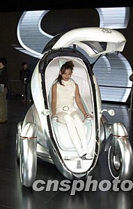 日本汽車龍頭企業(yè)豐田公司在東京國(guó)際汽車展上推出專門(mén)為2005年日本愛(ài)知世博會(huì)設(shè)計(jì)的新概念車,這種一人單乘的新概念車車身角度可自由升降,構(gòu)成不同的精美造型。中新社記者:王健