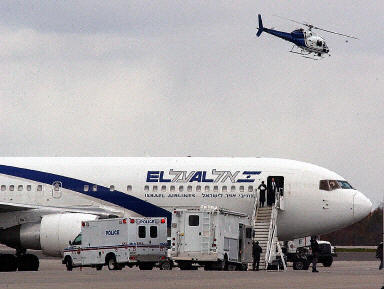這架ELAL105號航班載有180名乘客,原定由特拉維夫飛往加拿大安大略省的多倫多,但途中受到恐怖威脅而臨時改在魁北克省的蒙特利爾降落并做短暫停留。此后,該航班再度改變航線,飛往多倫多西南65公里的哈密爾頓國際機(jī)場,最后由那里飛往美國的洛杉磯。加拿大機(jī)場管理當(dāng)局未透露恐怖威脅的細(xì)節(jié),只是說對多倫多機(jī)場進(jìn)行了徹查,未發(fā)現(xiàn)可疑物。當(dāng)?shù)孛襟w稱,航班是在收到電話后改變航線的。