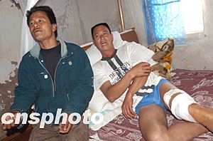 二十二日十一時(shí)左右,正在馬祖外公海捕漁的“閩連漁”2336號(hào)漁船遭遇馬祖海巡隊(duì)一艘海巡艇靠近查看。當(dāng)“閩連漁”2336號(hào)收完漁網(wǎng)返航時(shí),馬祖海巡艇上連續(xù)向“閩連漁”2336號(hào)船左舷和左駕駛艙開(kāi)了二十多槍,船員陳理寶、黃自團(tuán)被子彈擊中左大腿。下午四時(shí)三十七分,“閩連漁”2336號(hào)返回連江,兩名受傷船員被送往丹陽(yáng)醫(yī)院搶救。圖為船長(zhǎng)劉錦濱(左)和受傷船員陳理寶講述當(dāng)時(shí)情形。作者:王浩東