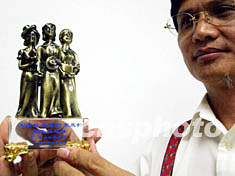 在長壽的宋美齡女士去世之際,世界華人追思宋氏三姐妹。由旅港海南同鄉(xiāng)會理事長韓陽光注資的深圳智華水晶金屬禮品廠制作的宋氏三姐妹紀念品上市。作者:陳文