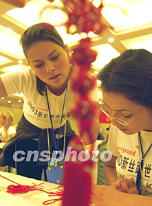 組圖:世界模特大賽佳麗學做中國結(jié)