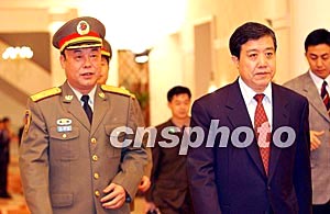 10月31日,身穿深藍色航天員制服的楊利偉在特首董建華陪同下進入禮賓府,特區(qū)政府和中聯(lián)辦官員、駐港部隊代表及各界知名人士在場歡迎。作者:洪少葵