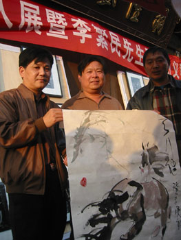 “太陽(yáng)星城愛(ài)心之旅”的成員——著名畫(huà)家李繁民先生現(xiàn)場(chǎng)揮毫作畫(huà),頃刻之間,一匹匹栩栩如生的駿馬就躍然紙上。在旁觀者中,有不少人是書(shū)畫(huà)愛(ài)好者,他們就著李老師的駿馬圖點(diǎn)評(píng),贊嘆聲不絕于耳。杭州的陳先生也是畫(huà)馬的愛(ài)好者,他說(shuō):“李老師的畫(huà)已經(jīng)跳出了傳統(tǒng)畫(huà)馬的局限,有自己的創(chuàng)新之處!