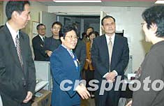 美東時(shí)間十一月六日上午,正在紐約訪問的中國國務(wù)院僑務(wù)辦公室主任陳玉杰(左二)在中國駐紐約總領(lǐng)事劉碧偉(右二)陪同下,來到美國《僑報(bào)》編輯部,看望采編人員。中新社記者:陳建