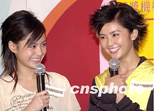 人氣組合Twins兩位成員鐘欣桐(阿嬌)、蔡卓妍(阿Sa)11月12日在香港出席《2003四臺聯(lián)頒音樂大獎》記者會,兩人坦稱今年最希望獲得“四臺聯(lián)頒音樂大獎---歌曲獎”。中新社記者:鄧慶樂