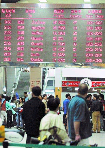 機場根據(jù)民航最新調整的非典預警處理方案進行處理,根據(jù)該方案,機上出現(xiàn)發(fā)燒病人,不需全機隔離,只需要隔離前后幾排或者服務過的人群。