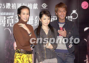 歌星莫文蔚、古天樂、關(guān)心妍11月18日在香港出席新城電臺(tái)廣播劇《尋覓3/4世紀(jì)幸褔鉆環(huán)》記者會(huì),三位廣播劇主角獲贊助商贈(zèng)送首飾打氣。作者:鄧慶樂