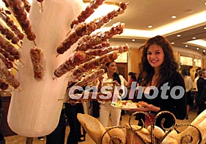 一百一十名世界小姐十八日抵達(dá)北京,在招待晚宴上北京的風(fēng)味小吃糖葫蘆吸引了美麗小姐的目光。中新社記者:廖文靜
