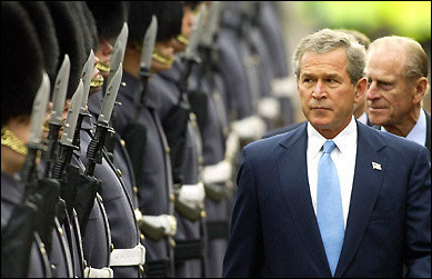 美國(guó)總統(tǒng)布什18日晚抵達(dá)倫敦,開(kāi)始對(duì)英國(guó)進(jìn)行國(guó)事訪問(wèn)。他將是繼1982年里根訪英以來(lái),第一位正式應(yīng)伊麗莎白女王之邀到英國(guó)進(jìn)行國(guó)事訪問(wèn)的美國(guó)總統(tǒng)。不過(guò),與里根訪英相比,布什這次有了很大的不同。