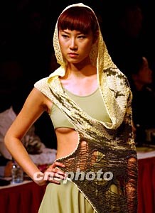十一月二十五日在北京舉行的“杉杉杯”中國時裝設(shè)計新人獎評選中,多位來自大學(xué)的年青新秀展示反戰(zhàn)主題時裝,用軍綠色搭配戰(zhàn)爭生活的混亂。中新社記者:賈國榮
