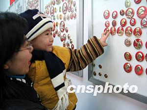 12月6日,山西省集郵協(xié)會、山西省集郵公司等在太原市舉行“紀念毛澤東誕生一百一十周年”集郵展暨紀念郵票發(fā)行式,“文革”時期流行的毛澤東像章令當今的兒童好奇。作者:張云