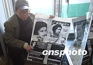 來自四川的劉曉慶的老鄉(xiāng)在法庭外支持劉曉慶。中新社記者:盛佳鵬