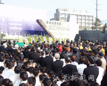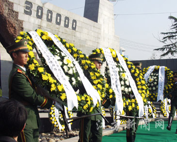 今天,江蘇省暨南京市各界人士,以及部分國外友好團(tuán)體的代表、友好人士、港臺愛國同胞共3000余人,在侵華日軍南京大屠殺遇難同胞紀(jì)念館隆重悼念南京大屠殺30萬同胞遇難66周年,并舉行了南京國際和平集會。