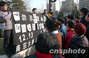 今天是南京大屠殺遇難同胞六十六周年祭日。六十六年前的這一天,侵華日軍攻占南京,抓捕毫無抵抗能力的中國(guó)居民,并殘忍屠殺三十余萬人,制造了聳人聽聞的南京大屠殺。