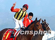 世界馬壇盛事──香港國(guó)際賽馬日十二月十四日在此間沙田馬場(chǎng)舉行,其包括香港杯、香港瓶、香港一哩錦標(biāo)、香港短途錦標(biāo)以及六場(chǎng)本地賽事,香港隊(duì)榮獲短途錦標(biāo)和一哩錦標(biāo)兩項(xiàng)桂冠。圖為香港“精英大師”獲短途錦標(biāo)頭馬后,受到全場(chǎng)馬迷歡呼。中新社記者:潘索菲