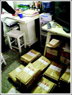 知情學(xué)生家長反映,周日他們將組織一次大規(guī)模數(shù)學(xué)考試,西安市教育局局長李尚儉聞?dòng),指派局稽查?duì)前往查處。昨日稽查隊(duì)一行4人來到尤廉家中,看到地上堆滿密封好的整袋整袋試卷,各考點(diǎn)的人陸續(xù)前來領(lǐng)取考卷。面對(duì)稽查人員的詢問,尤廉和楊益新說,他們這次考試未向任何部門申報(bào),幾年來一直是這樣做的。這次每個(gè)考生收取報(bào)名費(fèi)8元,若要他們編寫的“祖沖之杯”數(shù)學(xué)邀請(qǐng)賽資料,再加收2元。這次報(bào)名考生共有9000多人。當(dāng)聞?dòng)嵹s來的長延堡派出所副所長朱小青追問印章來由時(shí),楊益新承認(rèn)印章是私刻的。民警后來在房間電腦中發(fā)現(xiàn)這次考生實(shí)際人數(shù)竟達(dá)14919人?键c(diǎn)分別設(shè)在陜師大附中、高新一小、鐵一中等十幾所學(xué)校。記者在現(xiàn)場(chǎng)還發(fā)現(xiàn),他們印制的“2004年全國小學(xué)數(shù)學(xué)奧林匹克參賽辦法”已出爐,其中對(duì)收費(fèi)辦法、售賣材料及學(xué)生聯(lián)系辦法都有詳細(xì)要求;槿藛T隨后查扣了剩余試卷,并責(zé)令他們盡快通知各考點(diǎn)?。但事情遠(yuǎn)沒有那么簡單。