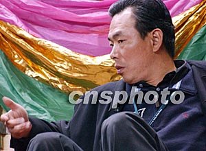 二零零三年女子世界杯乒乓球賽十二月十七日在香港舉行,中國乒乓球隊總教練蔡振華在看臺上觀看中國隊員進行比賽。中新社記者:錢興強