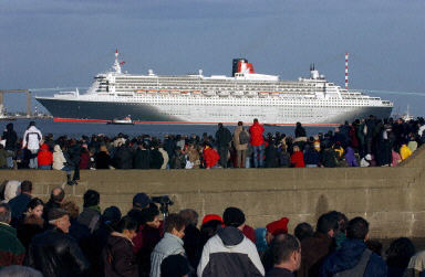 世界上最大的海上客輪“瑪麗女王二世”號(hào)22日正式下水,從法國(guó)圣納澤爾港駛向英國(guó)英格蘭南部港市南安普敦。