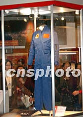 特備展覽“中國(guó)首次載人航天飛行展Ⅱ--給香港的禮物”十二月二十三日在香港科學(xué)館開(kāi)幕,圖為航天英雄楊利偉的工作訓(xùn)練服。中新社記者:錢興強(qiáng)