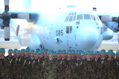 12月24日,日本航空自衛(wèi)隊(duì)運(yùn)輸部隊(duì)舉行儀式準(zhǔn)備前往伊拉克。航空自衛(wèi)隊(duì)的先遣部隊(duì)預(yù)計(jì)本月26日出發(fā)。