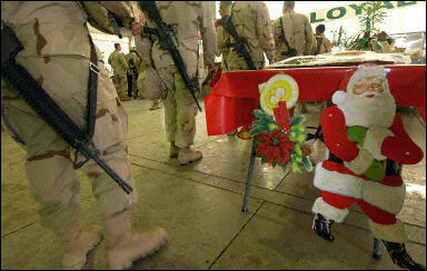 中新網(wǎng)12月25日電 據(jù)法新社報道,在圣誕夜,部分駐伊美軍在提克里特薩達姆的一處行宮舉行了圣誕午夜彌撒。美兵們合唱了贊美歌并品嘗了圣誕大餐。