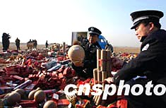 圖:北京警方集中銷(xiāo)毀非法、偽劣、超標(biāo)煙花爆竹
