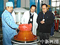 圖:鄭全寶、李占奎查看火箭上面級(jí)發(fā)動(dòng)機(jī)(12月30日 03:47)