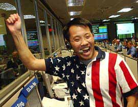 在簡(jiǎn)短的談話中,艾拉契贊揚(yáng)該實(shí)驗(yàn)室這次負(fù)責(zé)指揮“勇氣號(hào)”著陸系統(tǒng)的華裔工程師李煒鈞,認(rèn)為他的專業(yè)表現(xiàn)殊堪嘉許。據(jù)了解,李煒鈞3日晚在指揮室率先舉手歡呼的鏡頭,第二天登載于許多美國報(bào)紙的頭版。