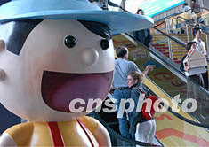第三十屆香港玩具展元月六日在香港會展中心開幕,吸引全球眾多玩具商參展,圖為醒目的卡通形象引人注目。中新社記者:錢興強