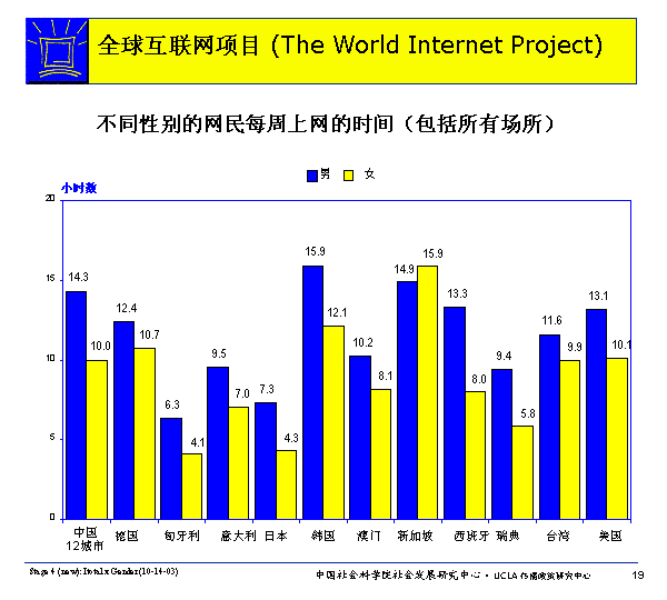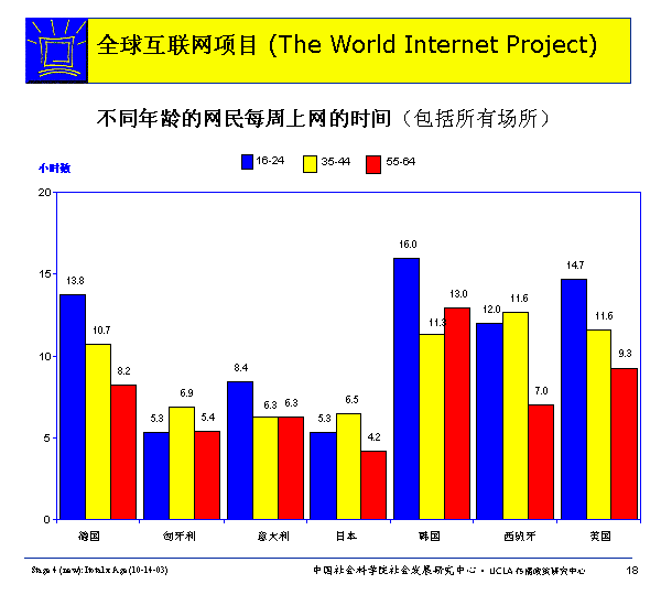 各國用網(wǎng)狀況:不同年齡、性別網(wǎng)民每周上網(wǎng)時間