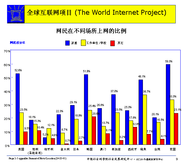 各國(guó)用網(wǎng)狀況:網(wǎng)民在不同場(chǎng)所上網(wǎng)的比例及時(shí)間