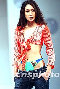 “國(guó)際時(shí)尚品牌匯演”1月16日在香港會(huì)展中心舉行,圖為模特展示參展品牌IKA的時(shí)尚時(shí)裝。作者:洪少葵