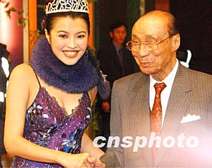 2004年度國際華裔小姐競選決賽一月十七日晚在香港舉行,香港知名人士邵逸夫出席華裔小姐競選晚會(huì)。 作者:錢興強(qiáng)