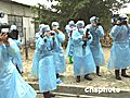 記者穿隔離服采訪養(yǎng)雞場(chǎng)