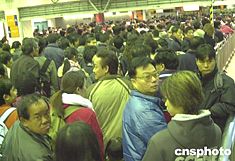 春節(jié)期間,香港羅湖口岸管理站加強(qiáng)各項(xiàng)管理措施,及時(shí)疏導(dǎo)出入關(guān)口的人潮。香港特別行政區(qū)行政長(zhǎng)官董建華等政府官員,元月二十日來到羅湖口岸進(jìn)行巡視。作者:錢興強(qiáng)  羅湖口岸客流量明顯增大,往返于香港、深圳的大批客人等候過關(guān)。作者:錢興強(qiáng)