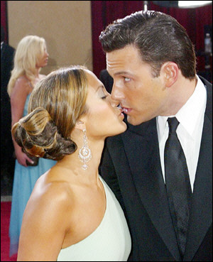 二00一年九月,珍妮佛洛佩茲梅開二度嫁給伴舞老公,但這段婚姻不滿十個(gè)月就告吹。二00一年底,珍妮佛洛佩茲在拍攝《Gigli》時(shí)與該片男主角本·阿弗萊克相識相戀,并秘密訂婚。