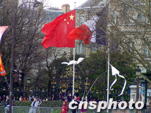 今天的香榭麗舍大街,兩旁編插的中法兩國(guó)巨幅國(guó)旗招展,中國(guó)紅燈籠和彩旗分外醒目,高音喇叭里播送著北京—巴黎大游行的中法文主題曲。法國(guó)人扶老攜幼,早早地在香榭麗舍大道兩旁排起了長(zhǎng)陣,其中有的還從萬(wàn)里之遙的法屬圭亞那專程乘飛機(jī)而來(lái)。