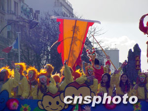 為了參加這次彩妝游行,展示華人新風(fēng)采,法華社團(tuán)進(jìn)行了“總動(dòng)員”,旅法僑界攜手,專門從中國(guó)訂制了彩車裝飾、彩旗、唐裝、鑼鼓等物品。游行中,六百名僑界青年首先亮相,他們手持鮮花,載歌載舞,盡情抒發(fā)對(duì)美好未來(lái)的憧憬。“開(kāi)天辟地”、“女媧補(bǔ)天”、“水母娘娘”、“醒獅鬧春”等數(shù)十輛精心準(zhǔn)備的彩車千姿百態(tài),而六千名華人華僑穿著節(jié)日盛裝進(jìn)行傳統(tǒng)舞獅、舞龍、鑼鼓、舞蹈等表演,更是充分展現(xiàn)龍的傳人的風(fēng)采。