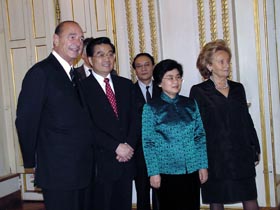 二十六日晚,法國總統(tǒng)希拉克和夫人在愛麗舍宮舉行國宴,歡迎胡錦濤主席伉儷