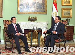 當(dāng)?shù)貢r(shí)間一月二十九日,中國(guó)國(guó)家主席胡錦濤抵達(dá)開羅,開始對(duì)埃及進(jìn)行國(guó)事訪問(wèn)。圖為胡錦濤與埃及總統(tǒng)穆巴拉克舉行會(huì)談。中新社記者齊彬/攝
