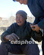 二月七日,北京密云縣一位七十七歲的老人在寒風(fēng)中痛哭,她的親人在二月五日元宵燈展踩擠事故中不幸遇難。中新社記者:宋吉河