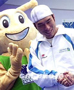 香港歌星許志安,二月八日以“渣打馬拉松2004”形象大使身份參加馬拉松賽。 作者:錢興強(qiáng)