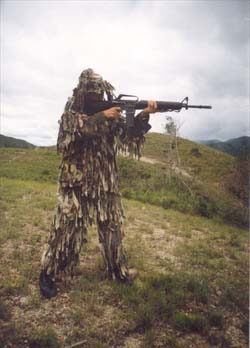 我記得教官在訓(xùn)練前曾說過:“子彈只找不長眼的人。”想到這里,我采取聲東擊西的戰(zhàn)術(shù),隨手撿起一塊石頭,朝我相反的方向扔去,爾后乘機迅速滾進(jìn)眼前一條戰(zhàn)壕掩體內(nèi),繼續(xù)前進(jìn)。當(dāng)“守敵”再次發(fā)現(xiàn)我的行蹤時,我又用一根樹枝挑起帽子,隱真示假、吸引火力,突然轉(zhuǎn)移。接敵時,我冒著火光沖天的爆炸,時而快速通過獨木橋,時而匍匐穿過鐵絲網(wǎng),時而快速繞過雷場區(qū),終于在“守敵”布置的天羅地網(wǎng)中死里逃生。然而,當(dāng)我出其不意地繞到“守敵”背后,大聲喊道:“不許動,繳槍不殺!”時,只見那些蒙面“守敵”,紛紛扭過頭,不是舉手投降,而是向我伸出了大拇指。正當(dāng)我納悶時,他們紛紛卸下面紗,這時我才發(fā)現(xiàn)眼前的“守敵”,竟是與自己朝夕相處的教官、軍曹和勤務(wù)兵。