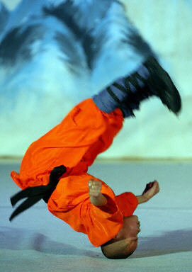 在臺灣訪問的河南少林寺僧眾2月12日晚在臺北舉行和平祈福和慈善義演,他們在義演中表演了少林棍、童子功、八段錦、炮錘、醉棍和羅漢十八手等功夫。