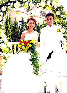 影視紅星林文龍、郭可盈2月13日在香港為《羅浮宮婚紗影城》代言,拍攝婚紗廣告。作者:鄧慶樂