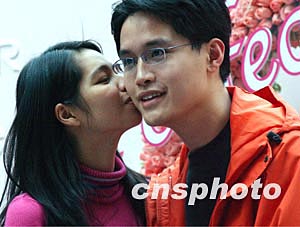 組圖:香港舉行"情侶體驗情人節(jié)之吻"活動