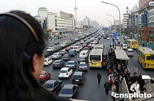 二月十六日上午,北京市區(qū)的西三環(huán)交通一片繁忙。北京市代市長王岐山當天在北京市十二屆人大第二次會議上做《政府工作報告》時提出,北京要加快交通設施建設速度,逐步緩解城市交通擁堵。中新社記者:滿會喬
