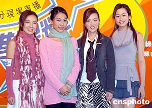 應(yīng)屆港姐李詩(shī)韻、曹敏莉、戚黛黛、李嘉怡(左起)2月17日在香港出席《加港星輝耀頤康》籌款晚會(huì)記者會(huì),籌款晚會(huì)當(dāng)晚幾位港姐將表演花式踢毽。作者:鄧慶樂(lè)