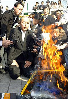 19日下午3時(shí),在位于漢城江南區(qū)驛三洞的公司總部停車場(chǎng),Netian娛樂公司在60多名記者的目睹下燒毀了1個(gè)拉面箱分量的第一次拍攝的照片和視頻膠卷。